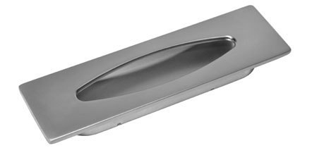 Kód produktu: 062281.47 Celokovová zápustná úchytka ze slitiny zinku, galvanicky pokovená, balená včetně šroubků M4 pro uchycení, do oválného otvoru 107x30x10mm. Rozměry: r.96 d.128 š.37 v.13 mm