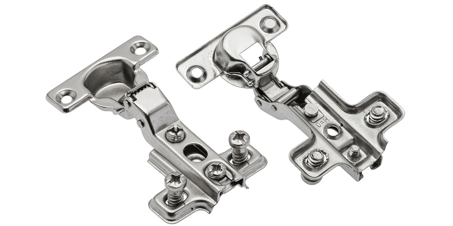 Mini 26mm celokovový závěs pro polonaložená dvířka, s roztečí děr 38mm a úhlem otevření 95 stupňů, dodávaný s namontovanou podložkou H=0 se dvěma EUROšrouby. V misce otvory pro připevnění vruty, jež nejsou součástí dodávky a je možno je objednat zvlášť.