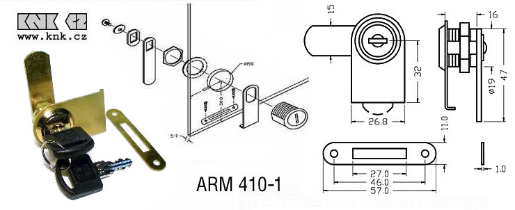 Kód produktu: 53230.03 Celokovový zámek na jednokřídlá skleněná dvířka do díry pr.20, galvanicky pokovený, dodávaný včetně dvou cylindrických klíčů a protiplechu. Rozměry: d.45 š.28 v.27 mm