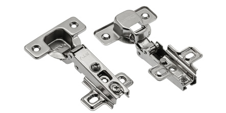 Klasický 35mm celokovový závěs (pant) pro naložená dvířka s roztečí děr 45mm a úhlem otevření 93 stupňů, dodávaný s namontovanou podložkou na vrut.