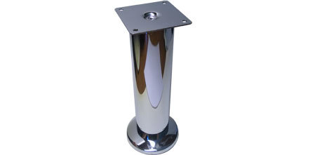 Kód produktu: 64142aG2.41 Kulatá ocelová nožka galvanicky pokovená, s výškovou regulací -0/+5mm, k přišroubování, pro skříňový nábytek. Destička 65x65 otvory pr.5 po 50mm Rozměry: pr.82 v.200 mm