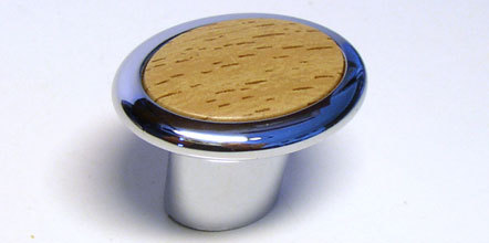 Kód produktu: A256G2TF181.50 Kombinovaný jednodílný knopek z galvanicky pokovené slitiny zinku s vloženou plastovou imitací dřeva, balený včetně šroubku M4 pro uchycení. Rozměry: d.37 š.27 v.25 mm