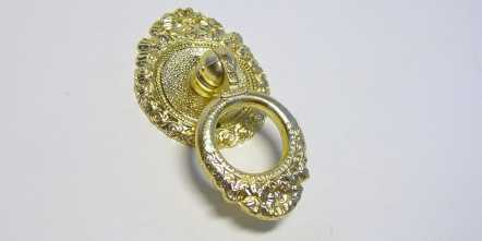 Kód produktu: 03900.16 Dvoudílný sklopný knopek ze slitiny zinku galvanicky pokovený patinou na mědi (pat.) nebo mosazí (Ms), dodávaný včetně šroubku M4. Rozměry: d.37 š.18 v.60 mm