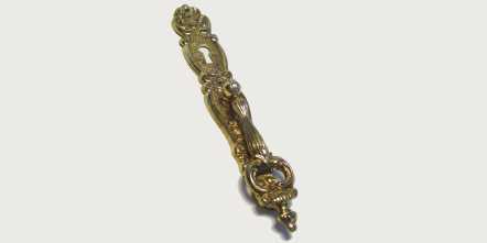 Kód produktu: 02900.16 Dvoudílný sklopný knopek ze slitiny zinku galvanicky pokovený patinou na mědi (pat.) nebo mosazí (Ms), dodávaný včetně šroubku M4. Rozměry: d.26 š.19 v.170 mm