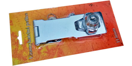 Kovová uzamykatelná petlice galvanicky pokovená, dodávaná balená v blistru