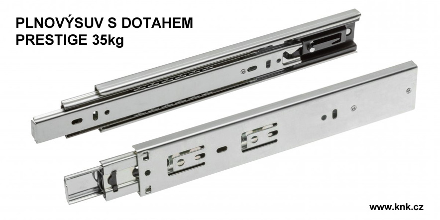 Zinkovaný kuličkový plnovýsuv s automatickým dovíráním bez tlumeného dojezdu, kovaný na bok zásuvky, pro její úplné vysunutí, v sadě dvou kusů na jednu zásuvku. Nosnost 35kg. Samozřejmostí tohoto plnovýsuvu je možnost úplného vysazení zabudované zásuvky, vysunutím po stlačení západek na vnější straně vnitřního dílu plnovýsuvu. Spojovací materiál - vrut pr.3,5x16mm, je součástí dodávky, avšak v případě požadavků na větší pevnost je možno dokoupit další.
