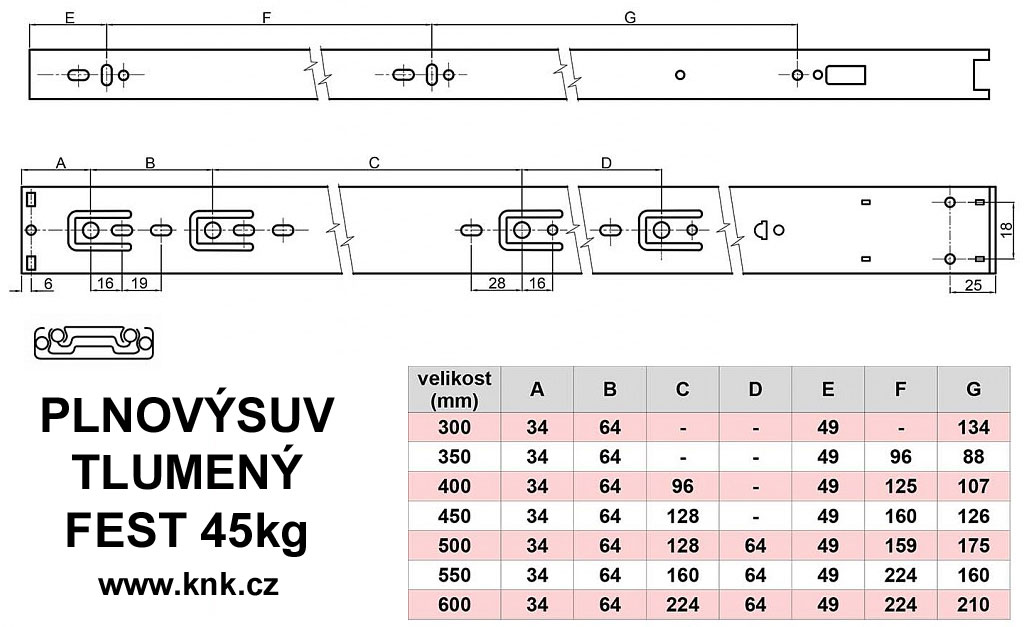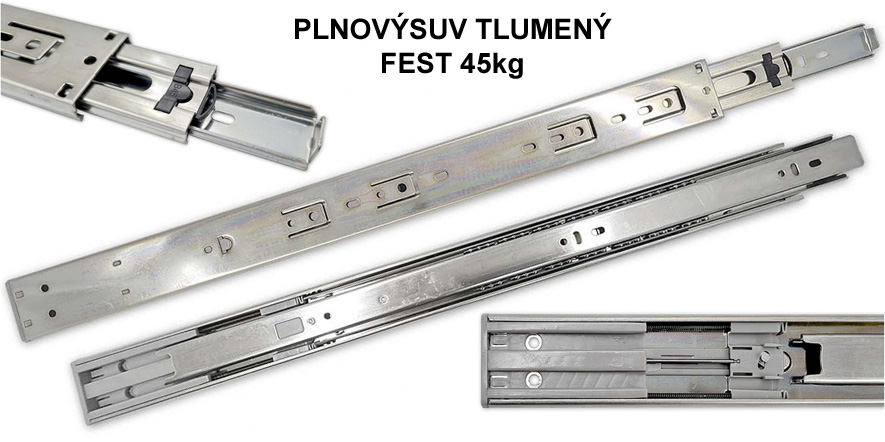 Zinkovaný kuličkový plnovýsuv s tlumeným dovíráním, na bok zásuvky, pro její úplné vysunutí, v sadě dvou kusů (levé a pravé) na jednu zásuvku. Samozřejmostí tohoto plnovýsuvu je možnost úplného vysazení zabudované zásuvky, vysunutím, po stlačení západek na vnější straně vnitřního dílu plnovýsuvu. Nosnost 45kg. Spojovací materiál - vrut pr.3,5x16mm, není součástí dodávky, ale je možno je dokoupit zvlášť.