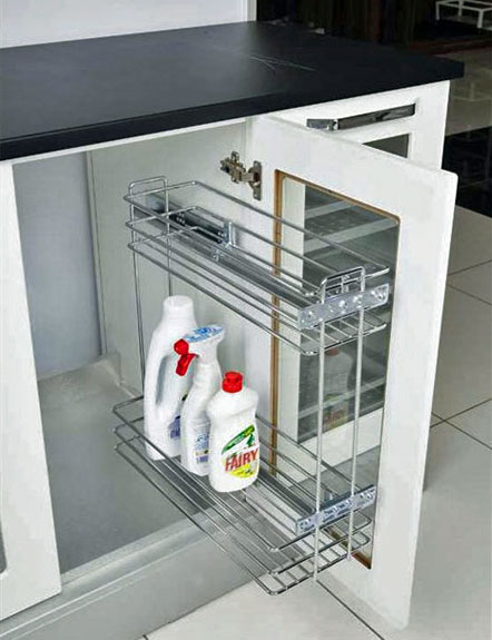Chromovaný pravý nízký boční výsuv 270mm (korpus š.300mm, hl.min.450mm)