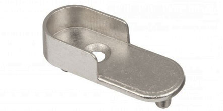 Kovová podpěrka oválné šatní tyče se dvěma trny, k zasunutí do otvorů pr.5mm, r.32mm s možností připevnění jedním vrutem do pr.4,5mm, jež není součástí dodávky.