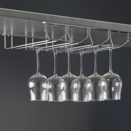 Galvanicky chromovaný, ocelový čtyřřadý držák, k zavěšení skleniček pod