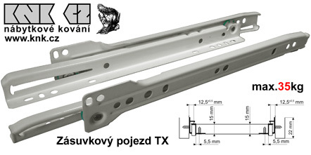 Klasický kolečkový částečný výsuv povrchově upravený komaxitováním,