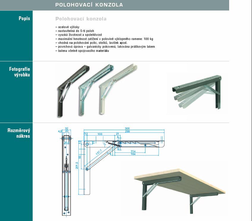 Nastavitelná pětipolohová ocelová konzola 0-90 stupňů, komaxitovaná,