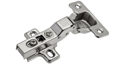 Tlumený 35mm celokovový závěs GT pro polonaložená dvířka s úhlem otevření 0-110st., roztečí 45mm a klipovou podložkou na vrut, pro snadnou demontáž dvířek.