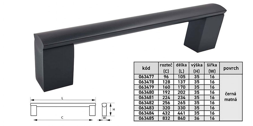 Celokovová třídílná úchytka ze slitiny hliníku, povrchově upravená lakováním černou matnou práškovou barvou, balená včetně šroubků M4 pro uchycení.