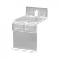 Prvek vyrobený z transparentního plastu, pro přichycení krycí lišty, maskující vodící lištu kování Ekonom či Standard, ke stěně.