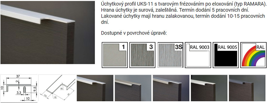 Profilová úchytka na míru UKS-11 - frézování F leštěná či lakovaná hrana