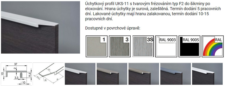 Profilová úchytka na míru UKS-11 - frézování F2 leštěná či lakovaná hrana