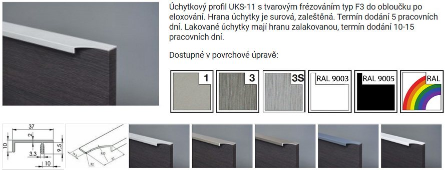 Profilová úchytka na míru UKS-11 - frézování F3 leštěná či lakovaná hrana