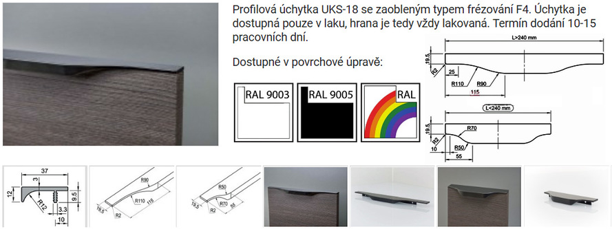 Profilová úchytka na míru UKS-18 - frézování F4 lakovaná hrana