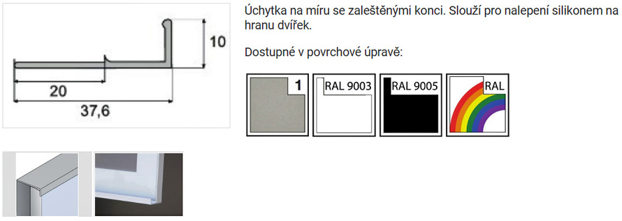 Profilová úchytka na míru UKS-9 - pro nalepení na hranu dvířek