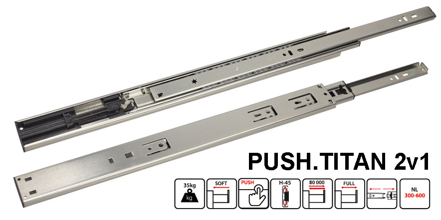 PUSH. 450mm TITAN 2v1 TLUMENÝ plnovýsuv 35kg