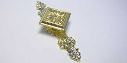 Kód produktu: 05600.16 Dvoudílný knopek ze slitiny zinku galvanicky pokovený patinou na mědi (pat.) nebo mosazí (Ms), dodávaný včetně šroubku M4. Rozměry: d.44 š.21 v.115 mm