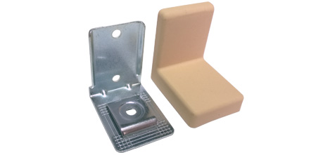 Třídílné kování k zavěšení horních kuchynských skříněk, vyrobené z oceli