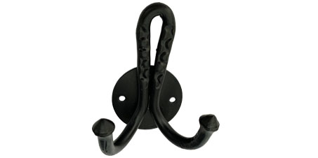 Masivní kovaný ocelový šatní věšák, lakovaný černou barvou, k přišroubování na desku pomocí dvou vrutů do pr.4,5mm, jež nejsou součástí dodávky.