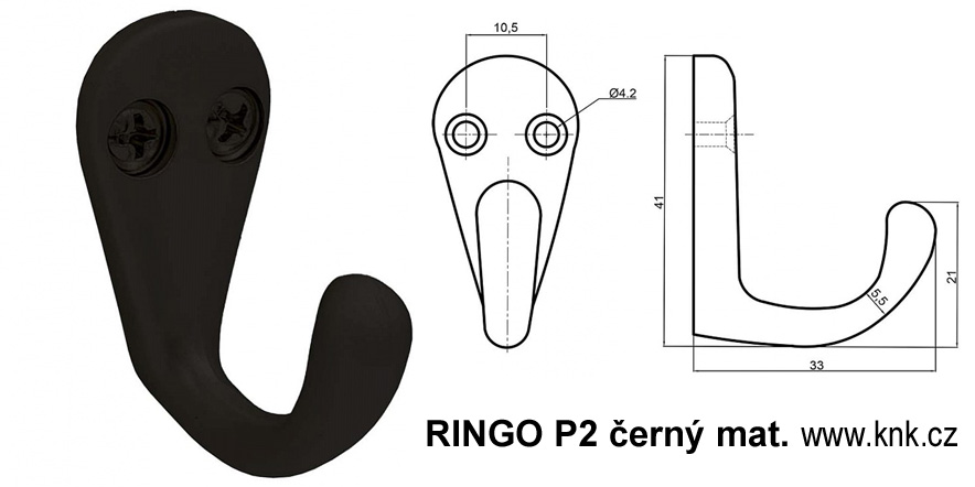 Celokovový šatní věšák z galvanicky pokovené či práškově lakované slitiny zinku, k přišroubování na stěnu, dodávaný včetně vrutů.
