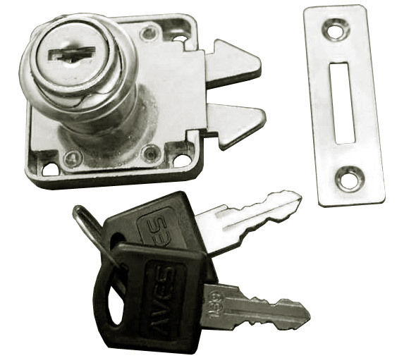 Kód produktu: 30120.03 Celokovový roletový zámek, galvanicky pokovený, dodávaný v krabičce včetně dvou kusů cylindrických klíčků a protiplechu k zadlabání. Rozměry: d.57 š.9 v.40 mm