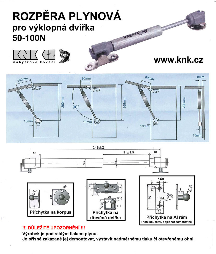 nahoru výklopných dvířek a jejich fixaci v otevřené poloze. Síla 100N