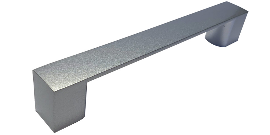 Celokovová jednodílná úchytka ze slitiny zinku, povrchově upravená stříbrným lakem v odstínu matného chromu, balená včetně šroubků M4 pro uchycení.