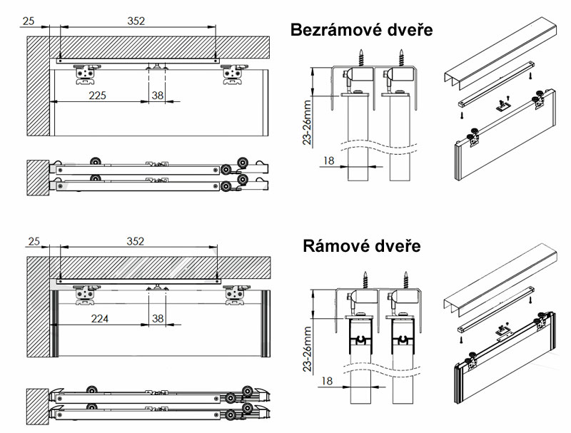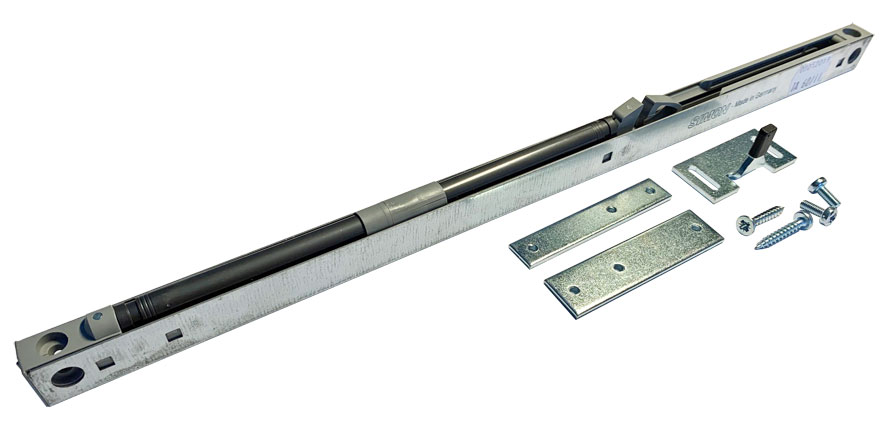 Mechanismus pro tlumené dovírání a aretaci krajních dveří s kováním MULTIOMEGA (Omega, RAMA, TWIN,...) do horní lišty OMEGA, pro rámové i bezrámové systémy. Včetně ocelového adaptéru (aktivátoru) tlumiče, spojovacího materiálu pro různé šířky rámových lišt a vrutů pro bezrámové systémy. Pro dveře do maximální hmotnosti 60kg!