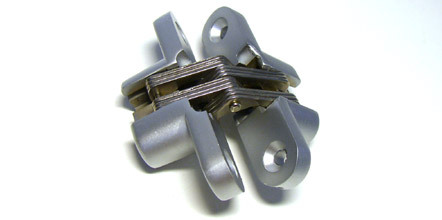 Celokovový segmentový závěs pro zafrézování do hrany desky, sloužící k pohyblivému spojení např. stolových desek, či dveří ve stejné rovině se stěnou, při zavření navazujících na desku tvořící stěnu. Rozměry pro zafrézování d.45, šířka 13,5 a hloubka 19(š.18) ve středu (5mm u kraje pantu).