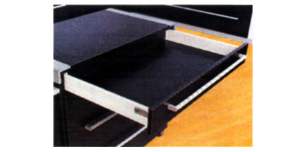 Skrytý plnovýsuv s tlumeným dojezdem, šedě lakovanými bočnicemi a spojkami