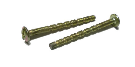 a křížovou drážkou pro upevnění úchytek či knopků k desce. Žlutý zinek, pat.