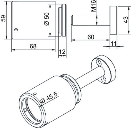 stropu, výškově stavitelný v rozmezí 60mm, kotvený dvěma vruty.