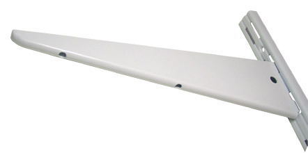 Kód produktu: 042175.15 Závěsná konzola systému pro výškově po 5cm stavitelné stěnové police, bílý komaxit. tl.1,2 mm. Nosnost páru konzol testována na 55kg. Rozměry: d.270 š.10 v.67 mm