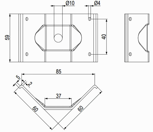 Ocelový, galvanicky pozinkovaný výlisek plechu tl.2 mm používaný k přichycení stolových noh k lubu stolu. Středový otvor pr.10mm, otvory pro uchycení lubů 4x pr.4mm