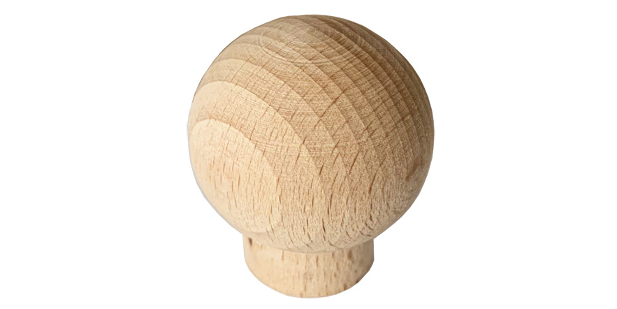 Celodřevěný knopek bez závrtné matice, koule na válcové podstavě, vyrobený z bukového dřeva povrchově neupravený, dodávaný bez vrutu.