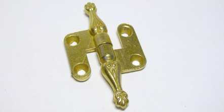 Kód produktu: 15100.16 Ozdobný dvoudílný vysazovací závěs, ze slitiny zinku, galvanicky pokovený patinou na mědi (pat.) nebo mosazí (Ms), v provedení pravý nebo levý. Rozměry: d.40 š.8 v.70 mm.