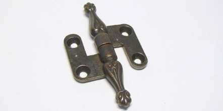 Kód produktu: 15001.16 Ozdobný dvoudílný vysazovací závěs, ze slitiny zinku, galvanicky pokovený patinou na mědi (pat.) nebo mosazí (Ms), v provedení pravý nebo levý. Rozměry: d.40 š.8 v.70 mm.