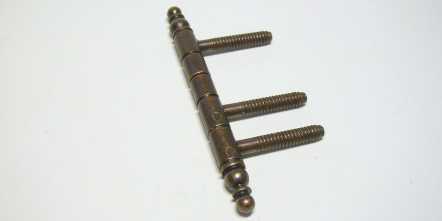 Kód produktu: 15600.16 Ozdobný dvoudílný vysazovací závěs, ze slitiny zinku, galvanicky pokovený patinou na mědi (pat.) nebo mosazí (Ms). Rozměry: d.66 š.8 v.88 mm.