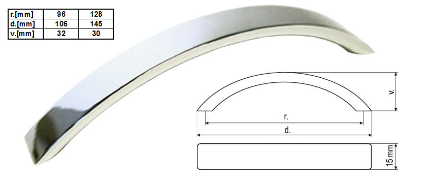 Kód produktu: UG43 128 R.43 Celokovová jednodílná úchytka s povrchovou úpravou aseptic broušený balená včetně šroubků M4 pro uchycení. Rozměry: r.128 d.144 š.15 v.31 mm