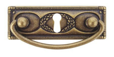 Celokovová sklopná úchytka ze slitiny zinku galvanicky pokovená odstínem stará mosaz, balená bez šroubků M4 pro uchycení. S otvorem pro klíč.