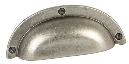 Celokovová úchytka typ mušle ze slitiny zinku galvanicky pokovená odstínem staré stříbro, balená bez šroubků M4 pro uchycení