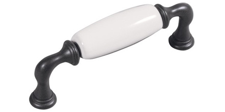 Kombinovaná jednodílná úchytka vyrobená z glazovaného bílého porcelánu v kombinaci s galvanicky pokovenou zinkovou slitinou v barvě antracit, dodávaná bez šroubků M4