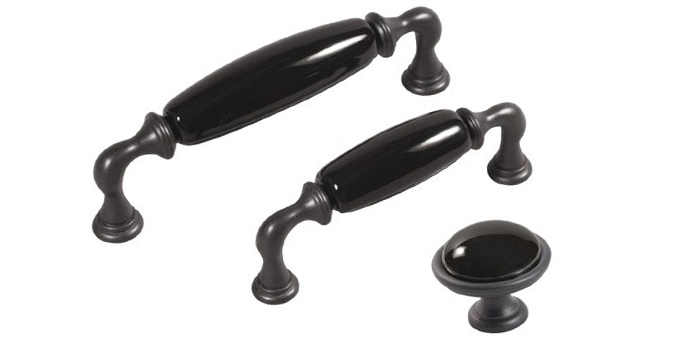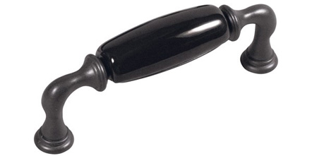 Kombinovaná jednodílná úchytka vyrobená z glazovaného černého porcelánu v kombinaci s galvanicky pokovenou zinkovou slitinou v odstínu antracit, dodávaná bez šroubků M4