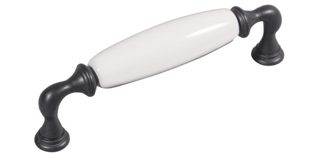 Kombinovaná jednodílná úchytka vyrobená z glazovaného bílého porcelánu v kombinaci s galvanicky pokovenou zinkovou slitinou v odstínu antracit, dodávaná bez šroubků M4
