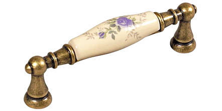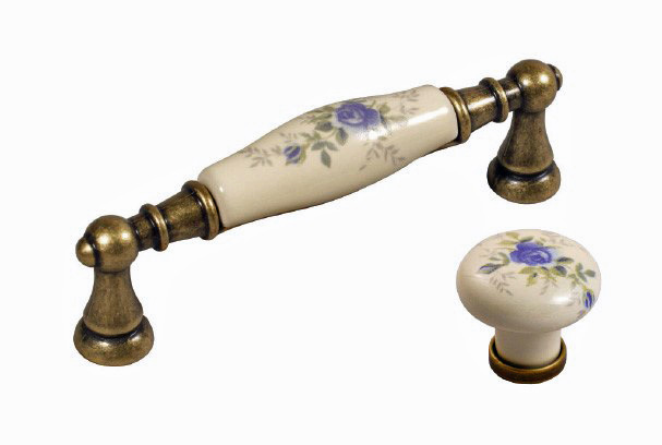 Kombinovaná jednodílná úchytka vyrobená z glazovaného porcelánu v kombinaci s galvanicky pokovenou zinkovou slitinou, dodávaná bez šroubků M4
